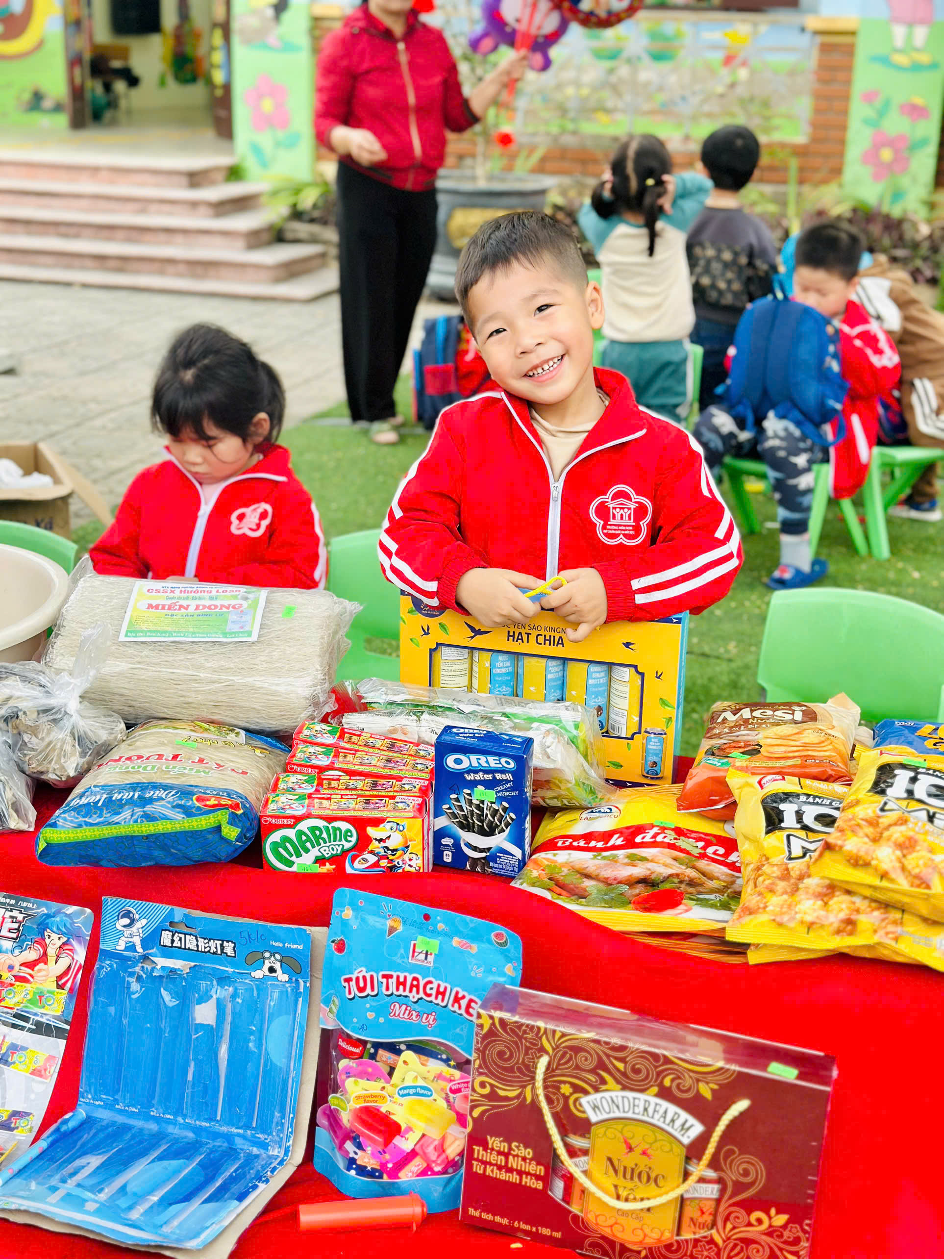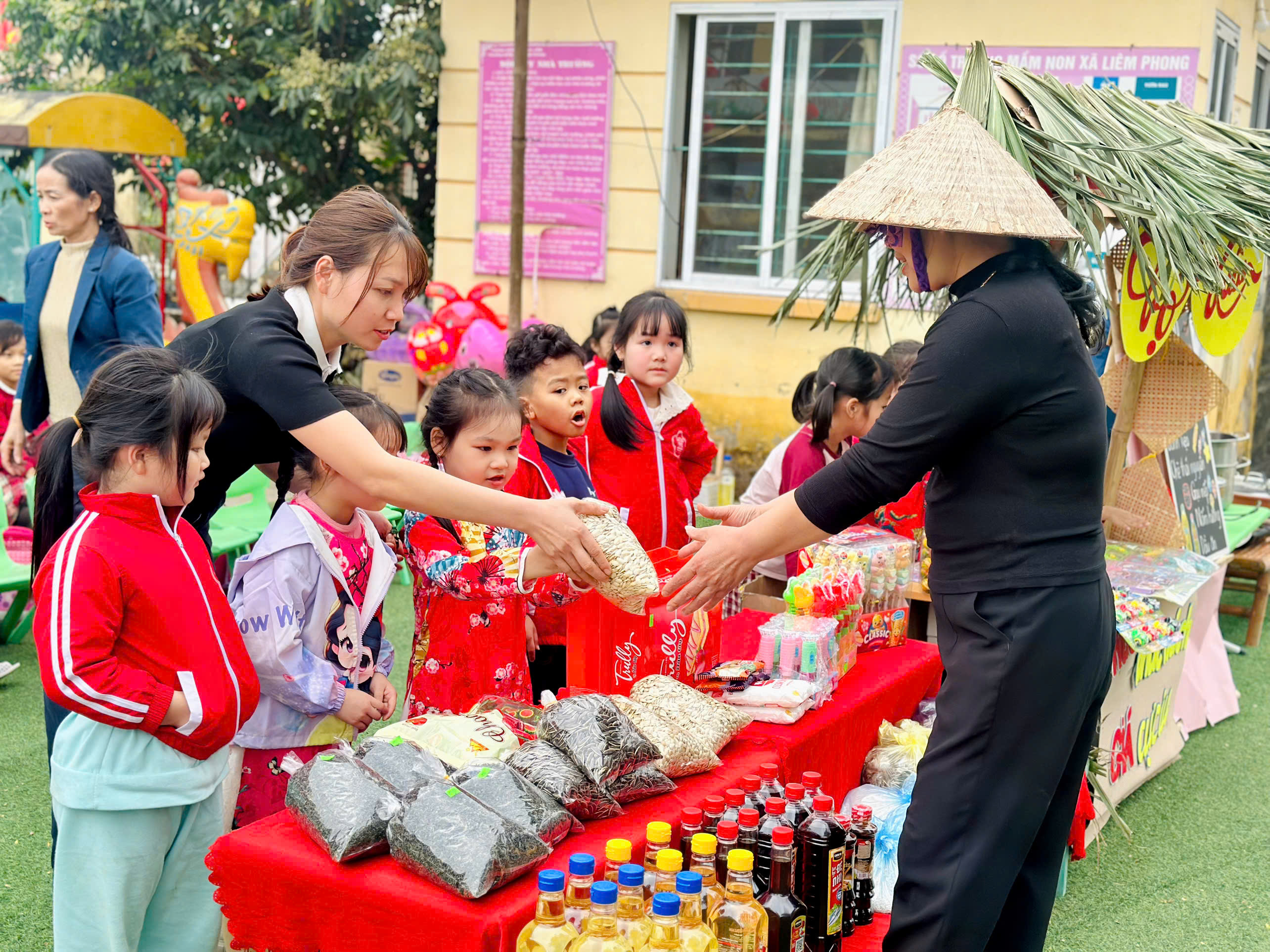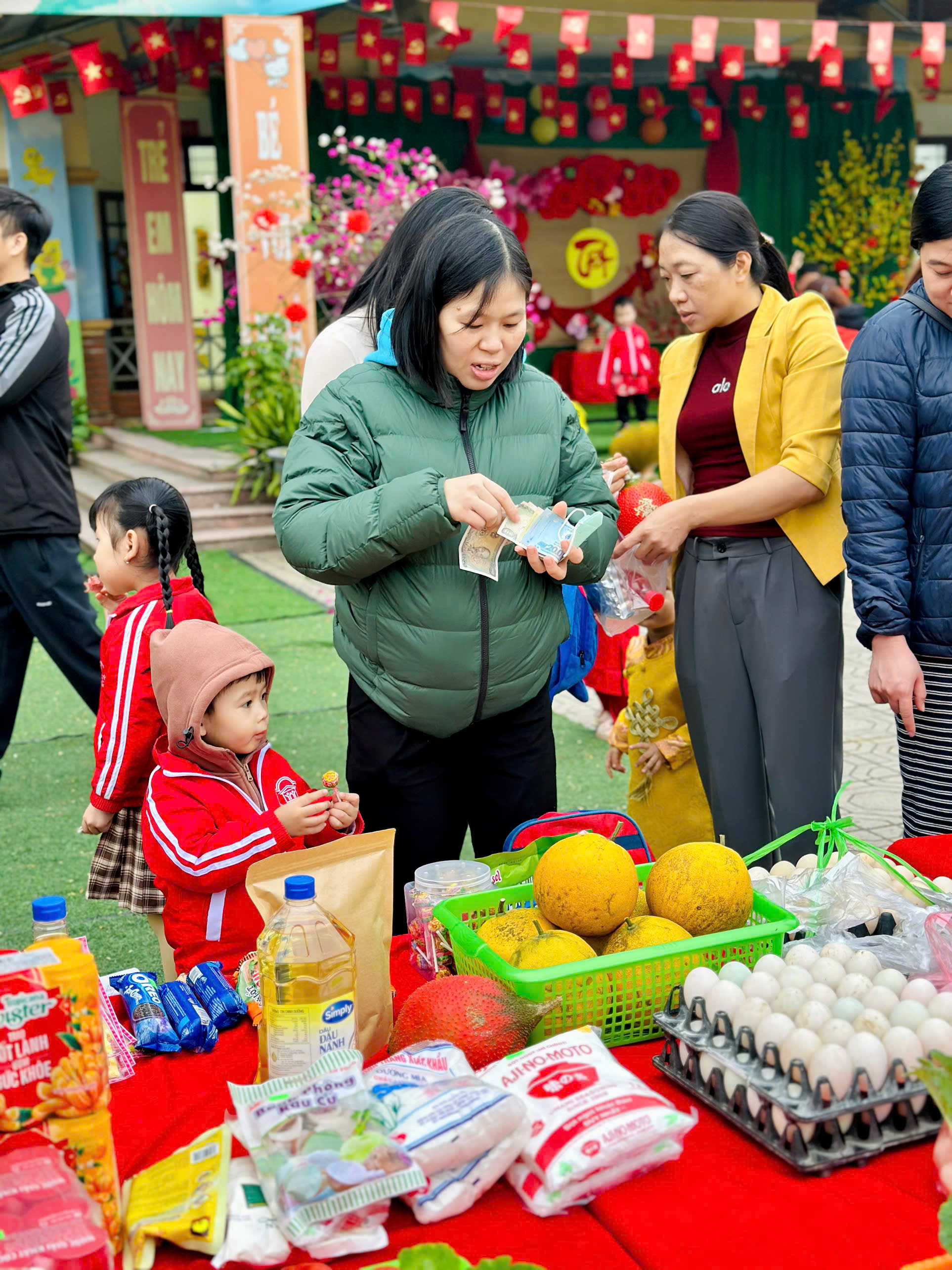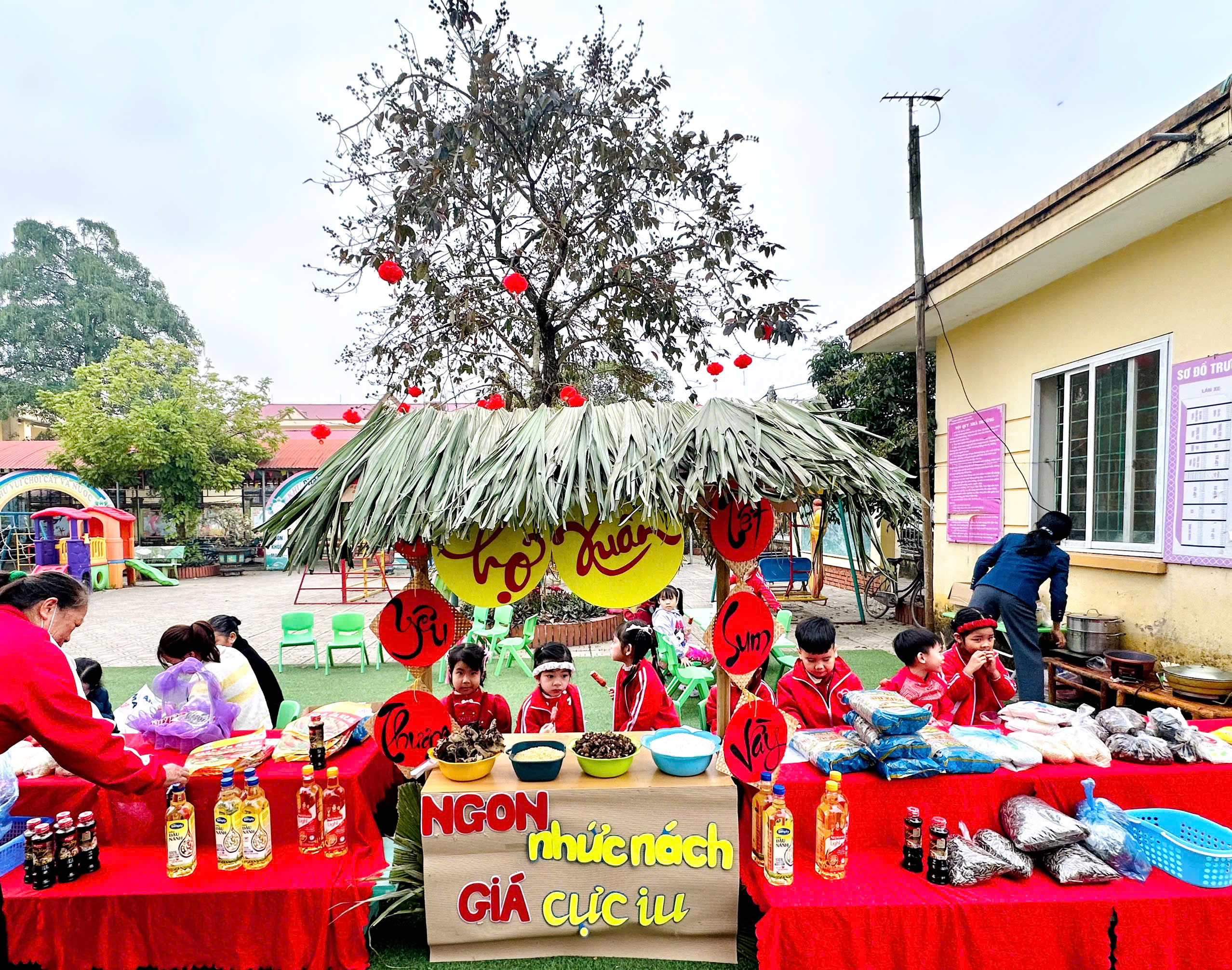 Các bé được tham gia tham quan và trải nghiệm các gian hàng mang đậm sắc Xuân như: gian hàng ẩm thực, gian hàng đồ dùng – đồ chơi ngày Tết… Qua hoạt động này, trẻ được làm quen với không khí Tết truyền thống, rèn kỹ năng giao tiếp và học cách chia sẻ, hợp tác cùng bạn bè.