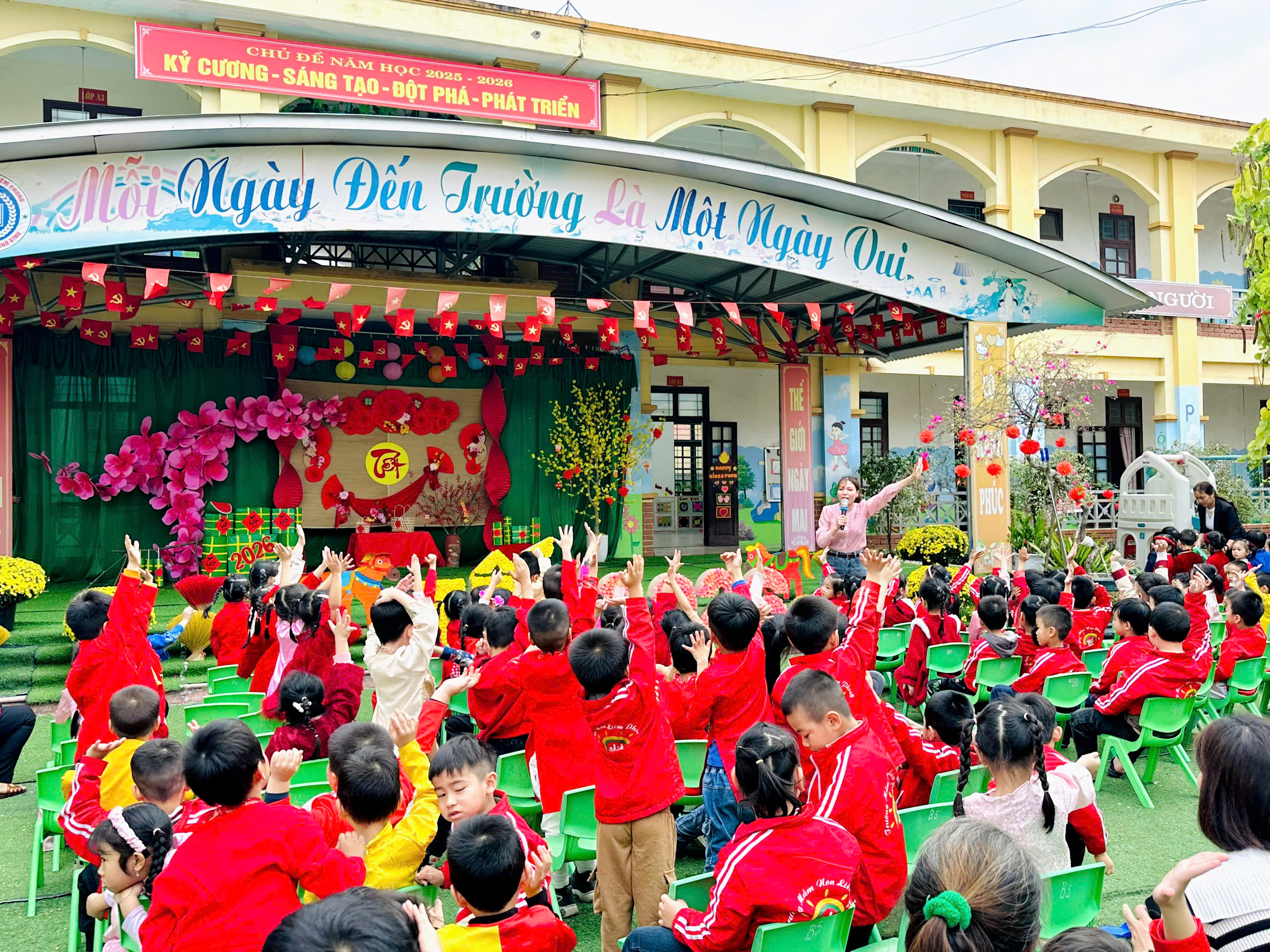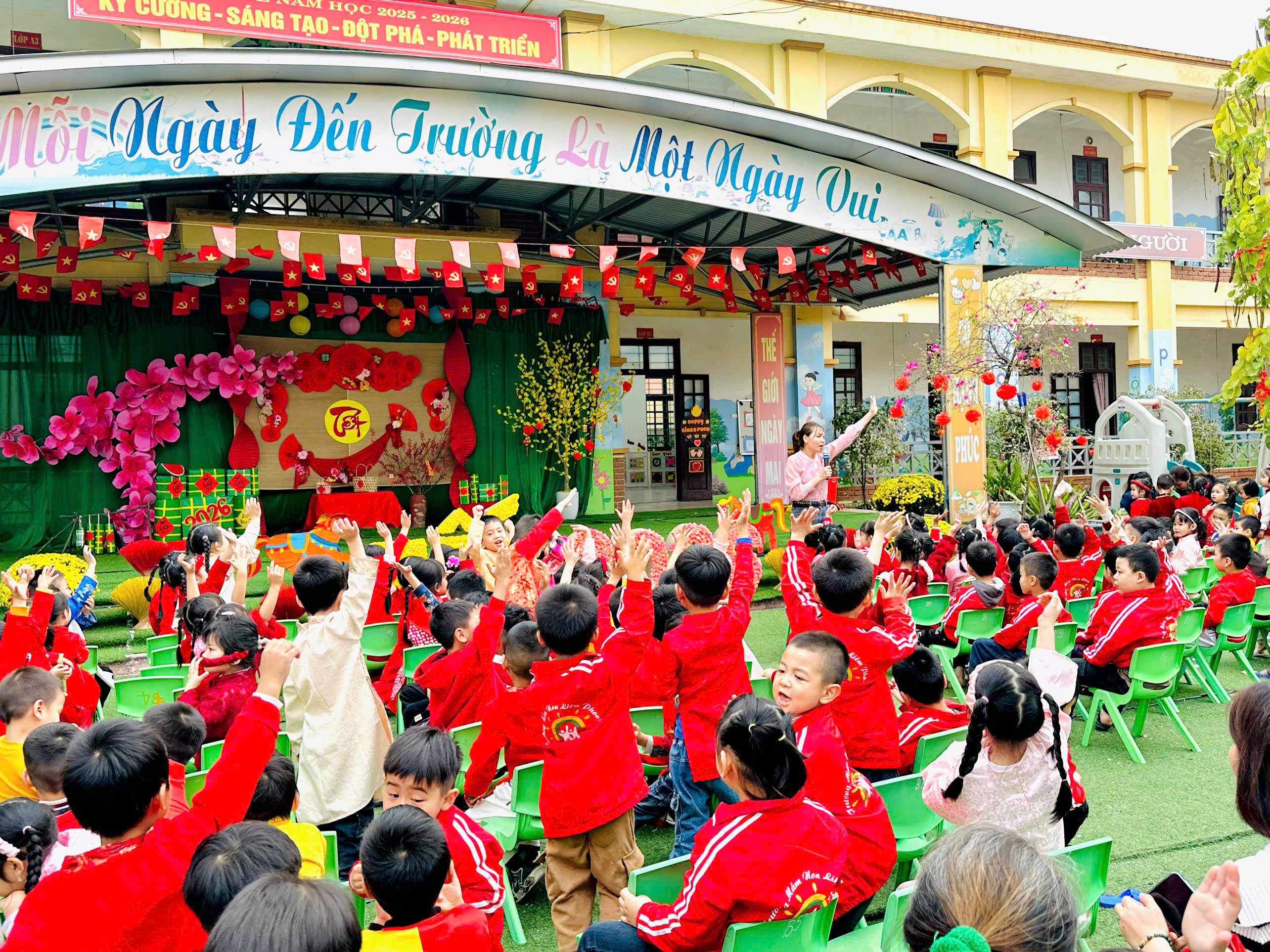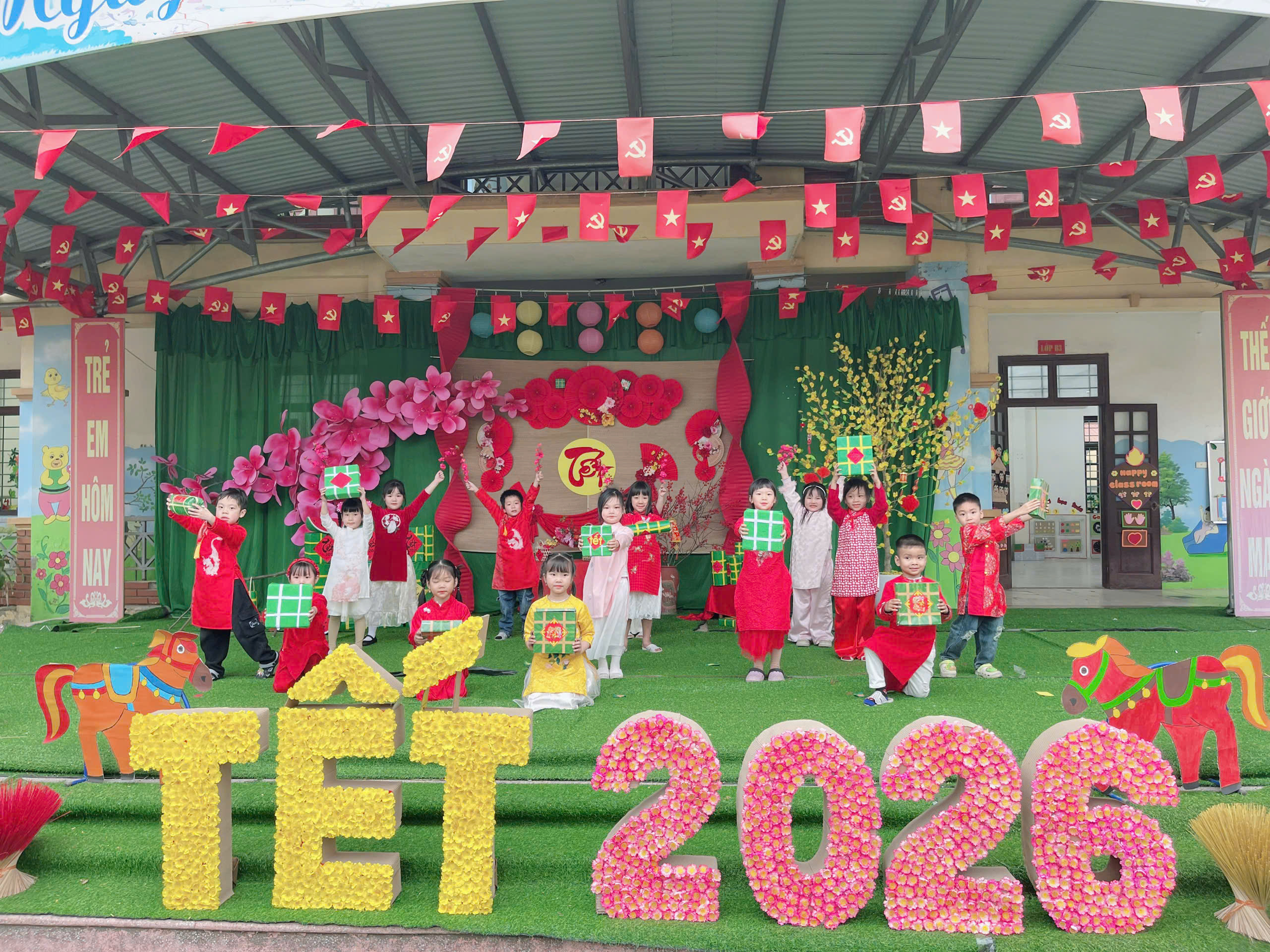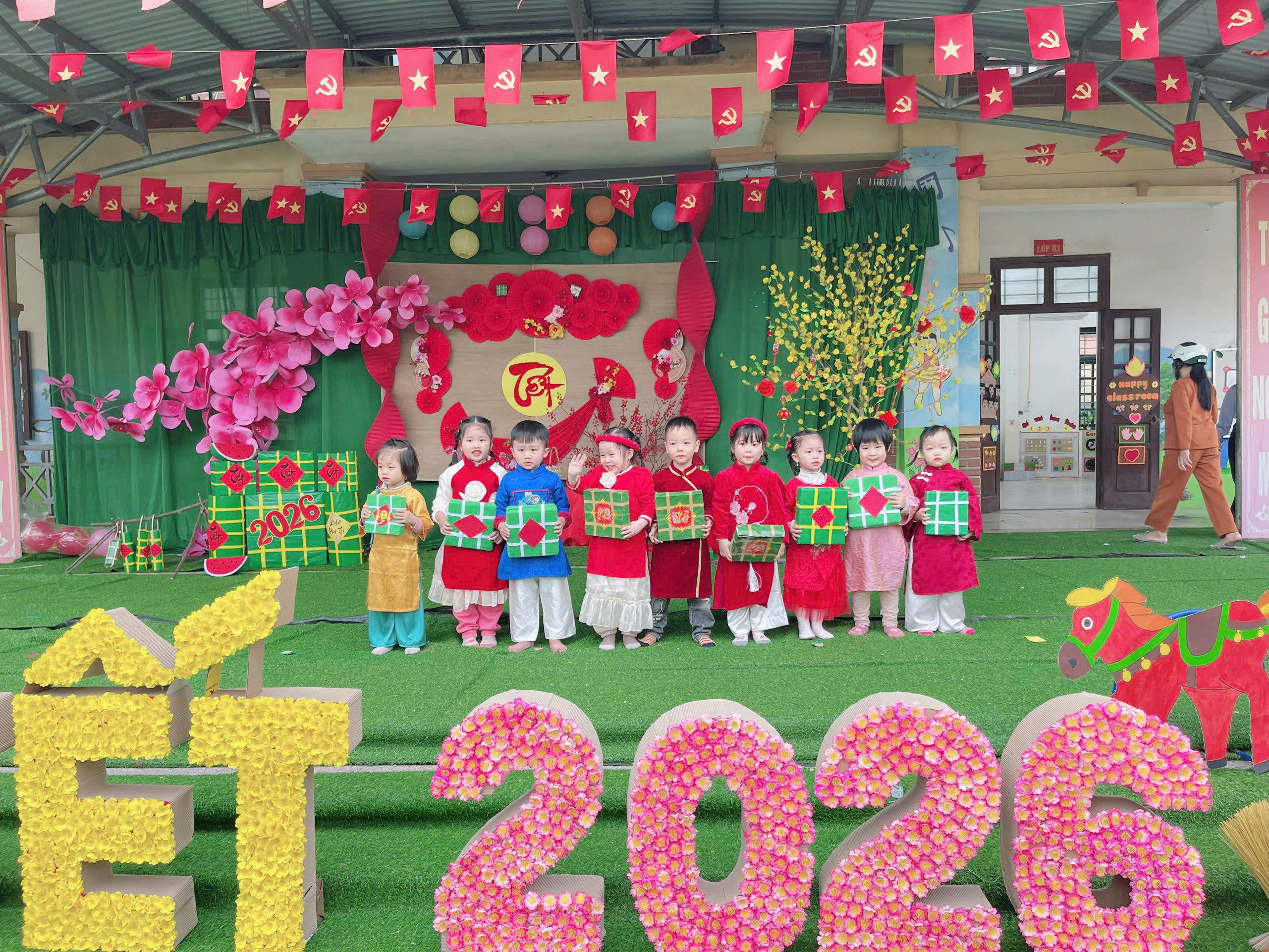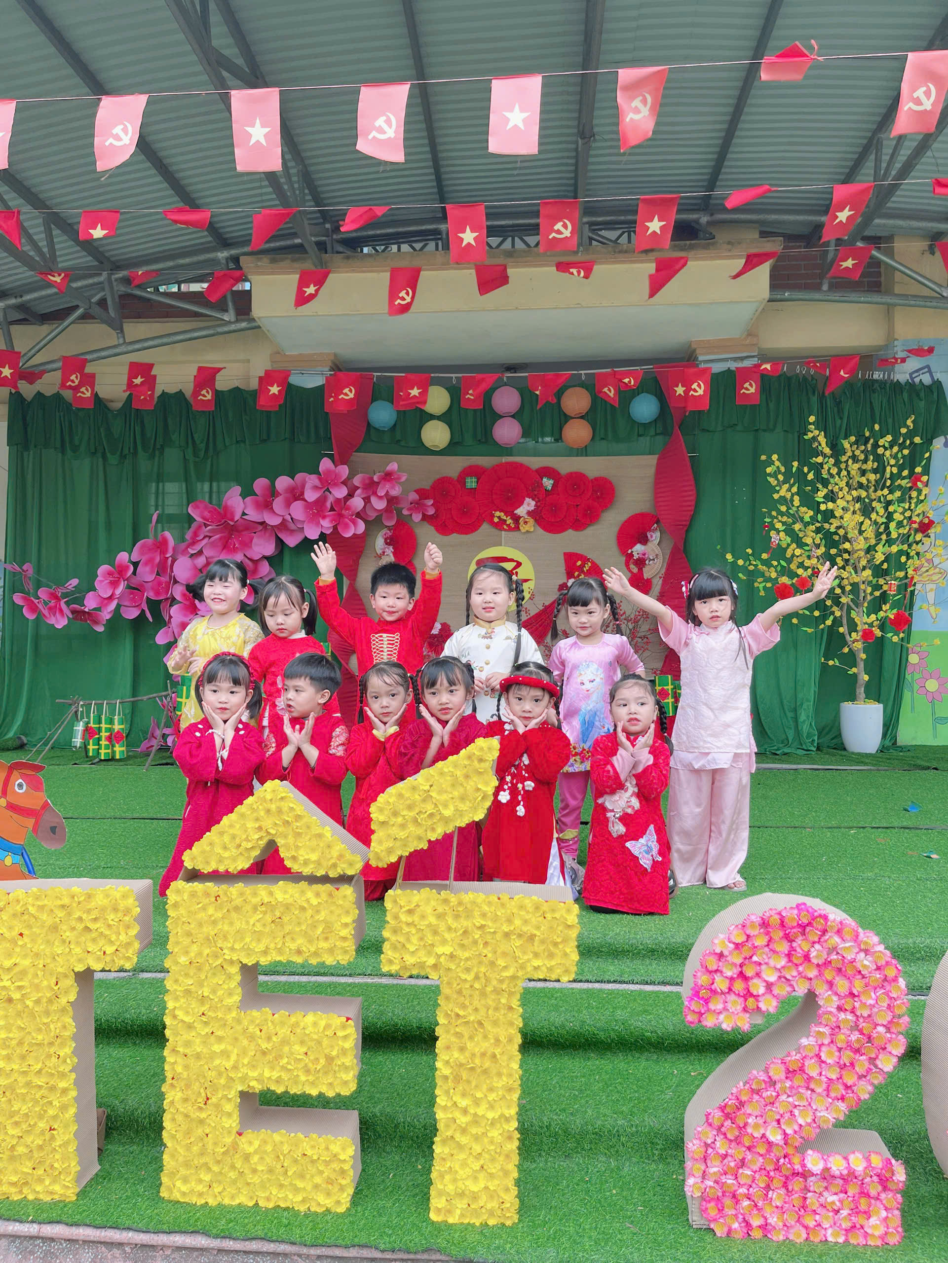 Chương trình văn nghệ chào Xuân diễn ra trong không khí vui tươi, rộn ràng với những tiết mục múa, hát đầy sắc màu. Các bé tự tin biểu diễn, mang đến không khí vui tươi, ấm áp, lan tỏa niềm vui và tiếng cười khắp sân trường.